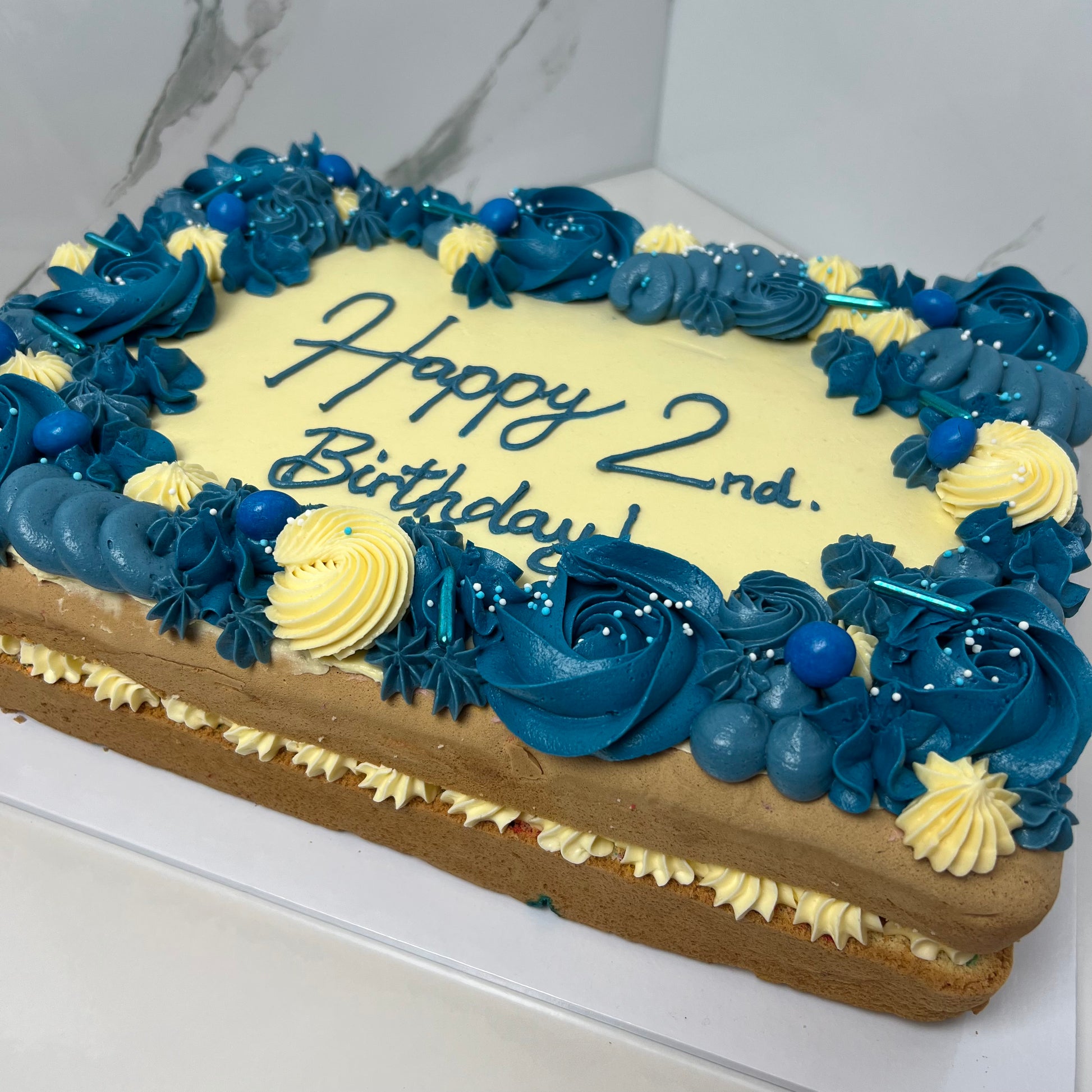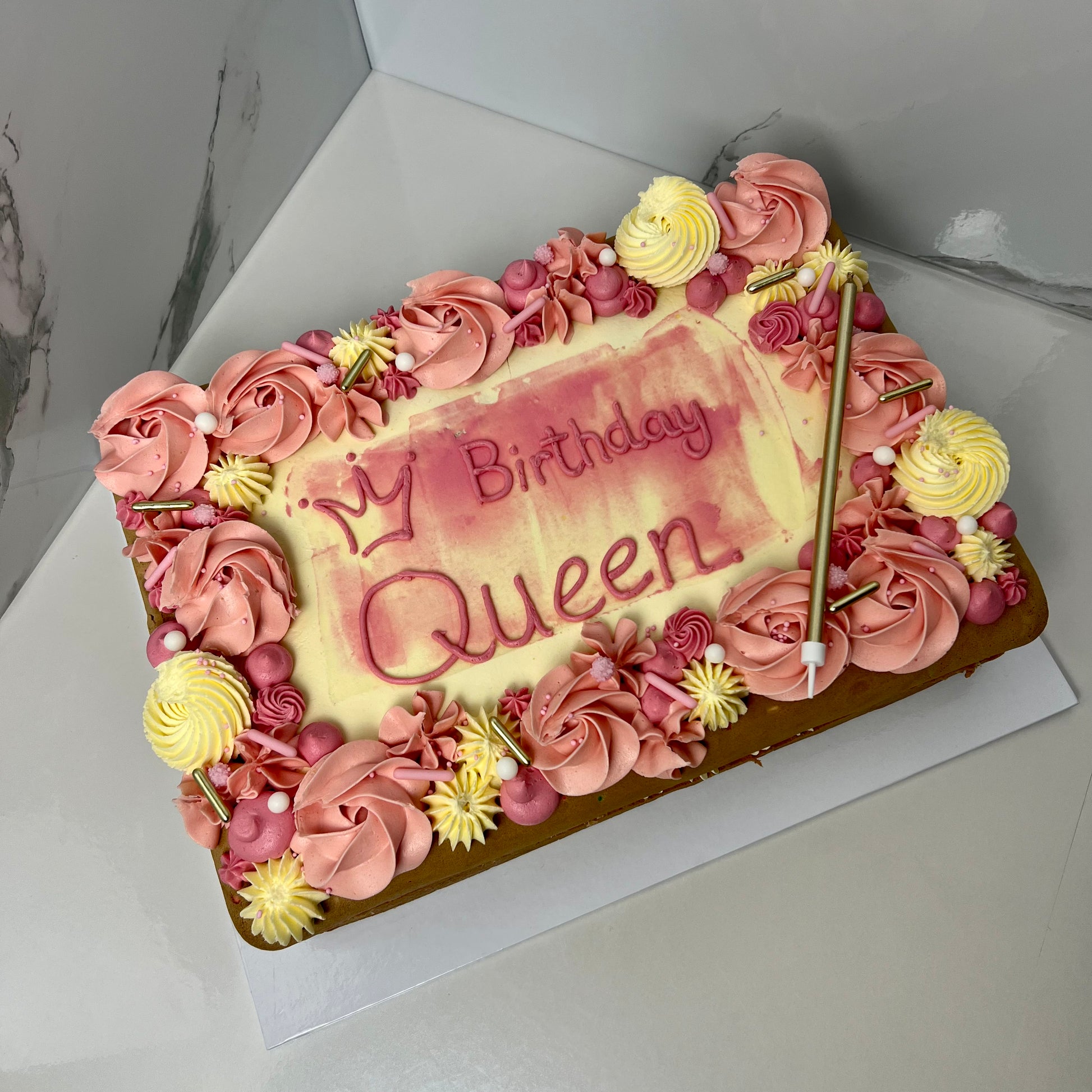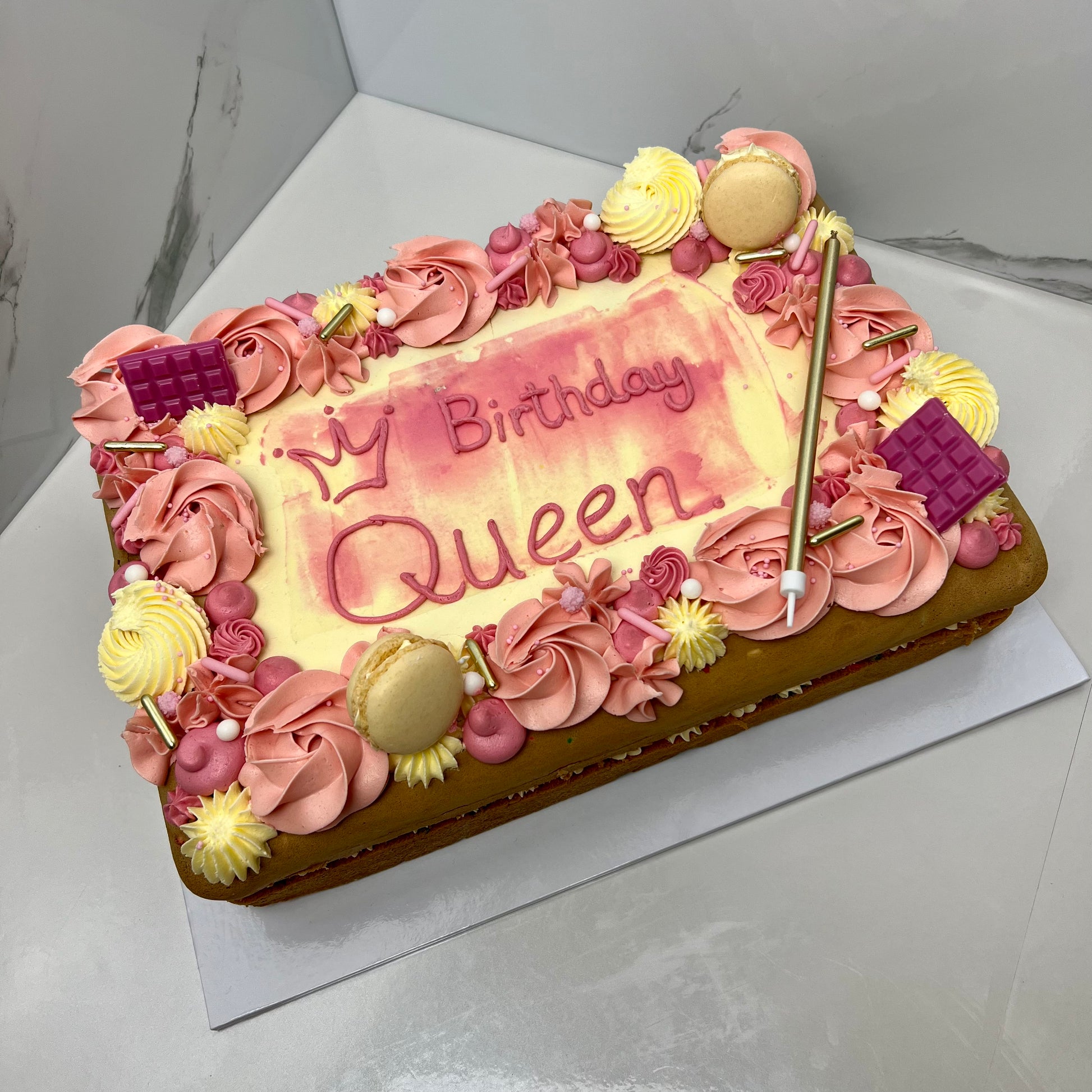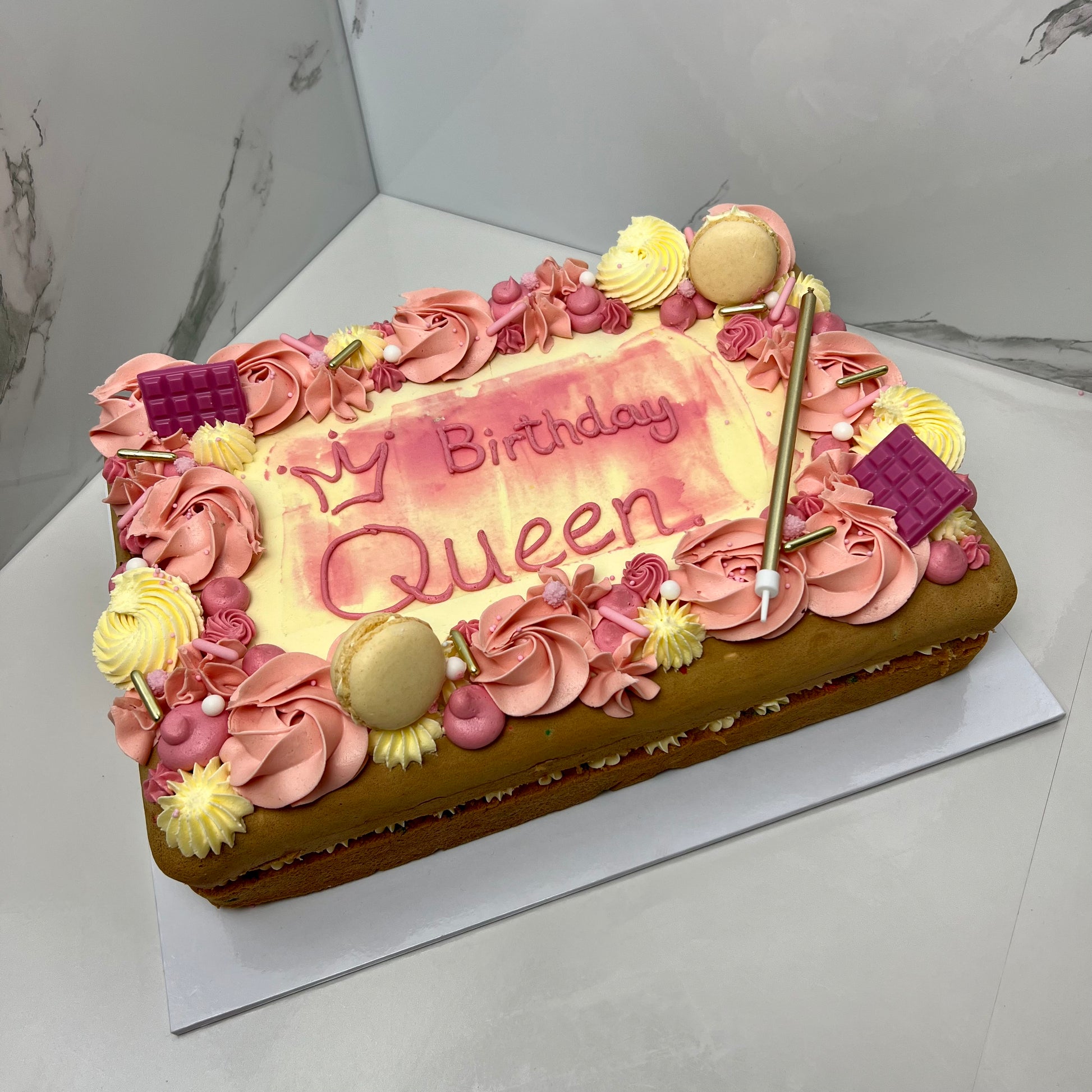 Met dit klassiek, rechthoekig dessert zet je telkens weer iets fantastisch op tafel. Het unieke aan dit gebak is dat je een zelfbedachte boodschap kan laten schrijven boven op de taart, volledig eetbaar dus. Of nu iemand jarig is, je van iemand houdt of je een ander simpelweg wil laten weten hoeveel hij of zij voor je betekent, het kan allemaal!
