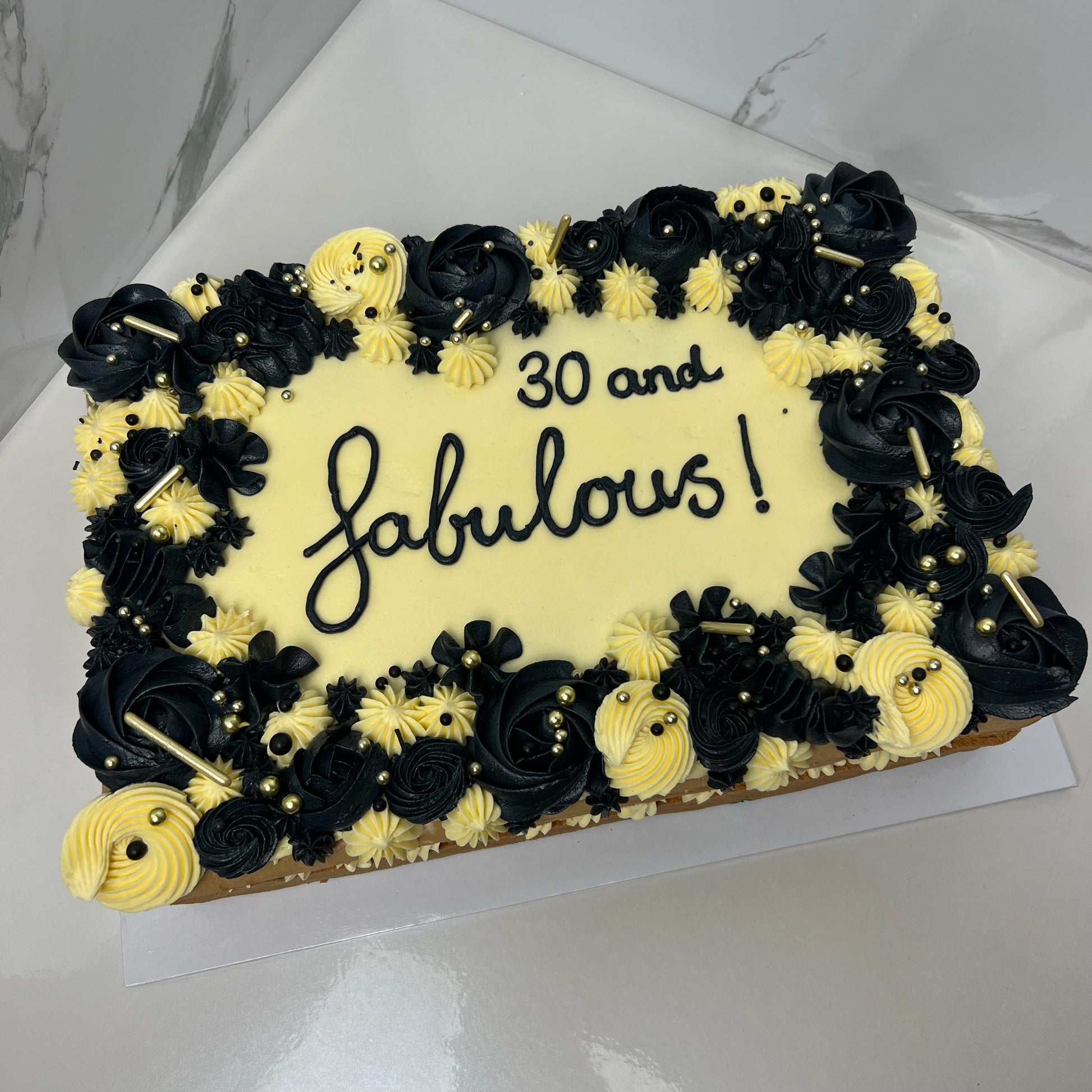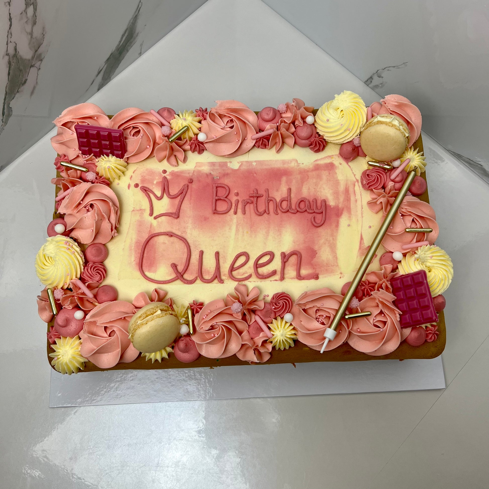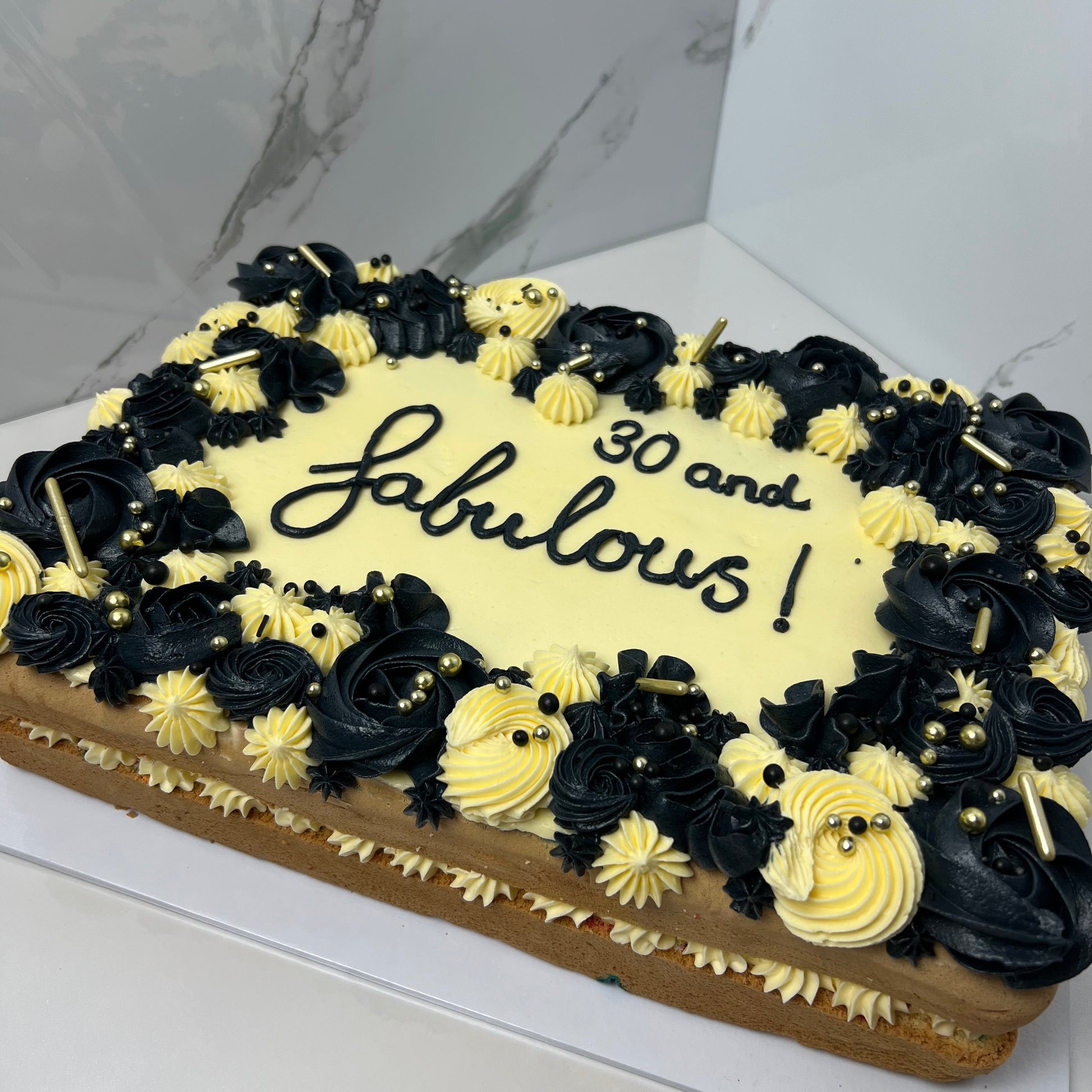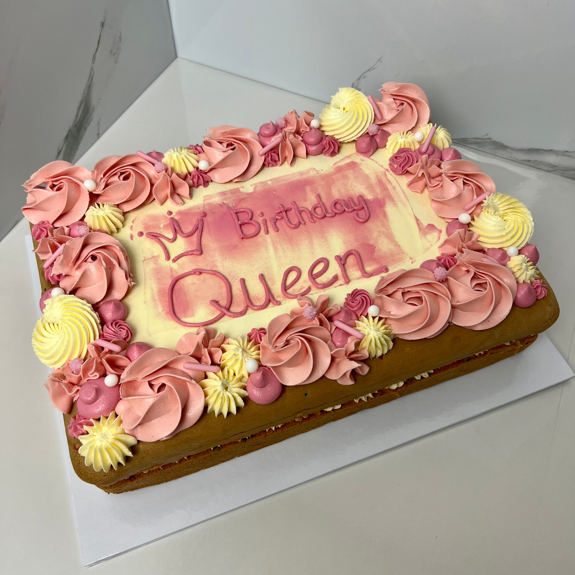 Met dit klassiek, rechthoekig dessert zet je telkens weer iets fantastisch op tafel. Het unieke aan dit gebak is dat je een zelfbedachte boodschap kan laten schrijven boven op de taart, volledig eetbaar dus. Of nu iemand jarig is, je van iemand houdt of je een ander simpelweg wil laten weten hoeveel hij of zij voor je betekent, het kan allemaal!